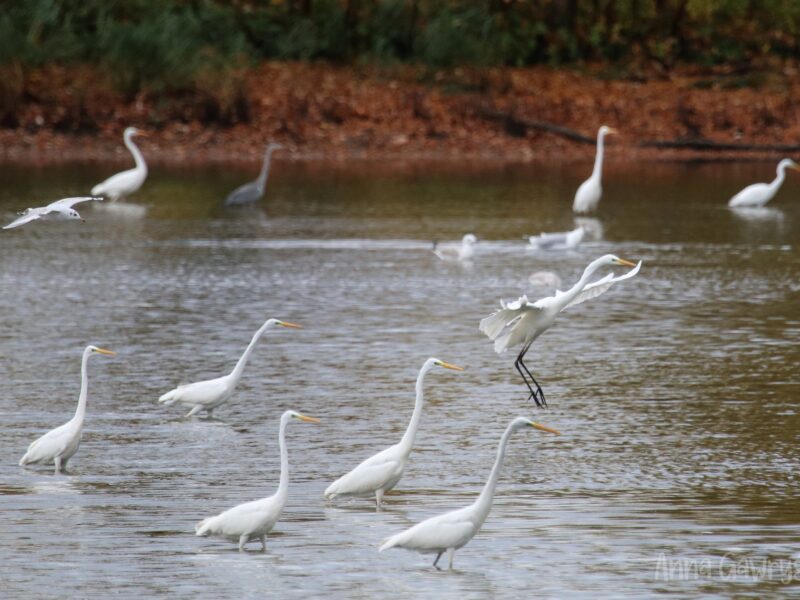 Jesienne spuszczenie wody ze stawów – w celu odłowu ryb – to wspaniała okazja na łatwy posiłek dla czapli, które tłumnie zleciały się w Falentach. To cudowne zgromadzenie  w obiektywie naszej Anny Gawryś.