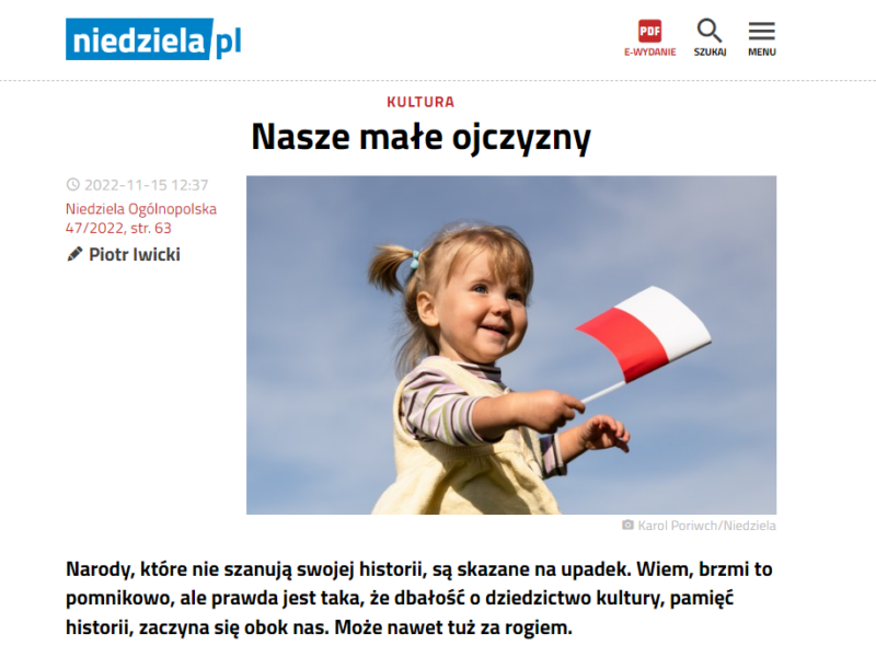 Media o nas 16 listopada 2022 Niedziela 47/2022 Piotr Iwicki z refleksją o konieczności ochrony naszego falenckiego dziedzictwa https://m.niedziela.pl/artykul/162495/nd/Nasze-male-ojczyzny