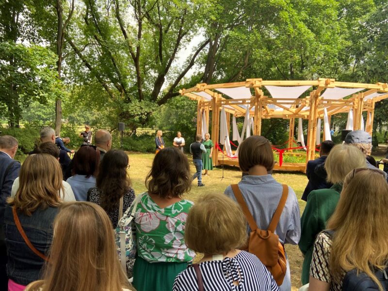 Na początku był konkurs na pawilon inspirowany pragnieniem zwycięstwa, wsparcia i ulgi końca wojny na Ukrainie. Następnie zgromadzenie partnerów, sponsorów i zdobycie przychylności wszystkich władz konserwatorskich itp. Co nie było łatwe gdyż pawilon stanął w ogrodzie Ermitażu, czyli najstarszego budynku w ogrodach Lubomirskich, stojącego tu zanim Łazienki stały się Królewskimi. Potem wspólne budowanie. A teraz wielka radość i satysfakcja z otwarcia w tak licznym gronie znamienitych gości.