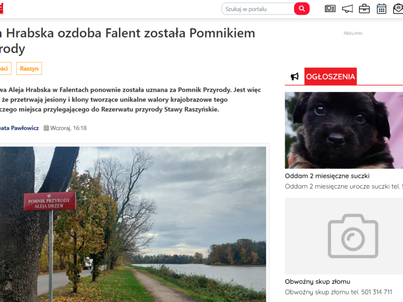 Więcej na ten temat tutaj: https://skof.org.pl/zabytkowa-aleja-hrabska-pomnikiem-przyrody-the-historic-county-alley-has-been-re-recognized-as-a-natural-monument-and-appropriately-marked/