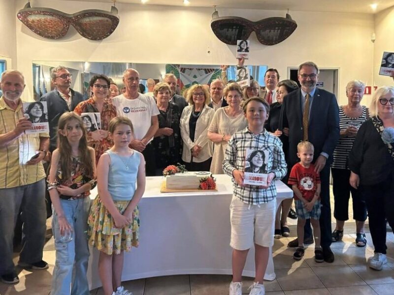 Wieczór zwieńczyły: piękny tort-delicja z cukierni AlaMaCiasto.pl z Raszyna, i zaśpiewane współnie przez tłumnie przybyłych gości „STO LAT” dla Sztuki i pamięci Pani Profersor, przy akompaniamencie Pana dr Jacka Pająka. Wielką radość sprawiły licznie obecne dzieci, młodzież i seniorzy! Dziękujemy wszystkim za udział i rozmowy do późna.